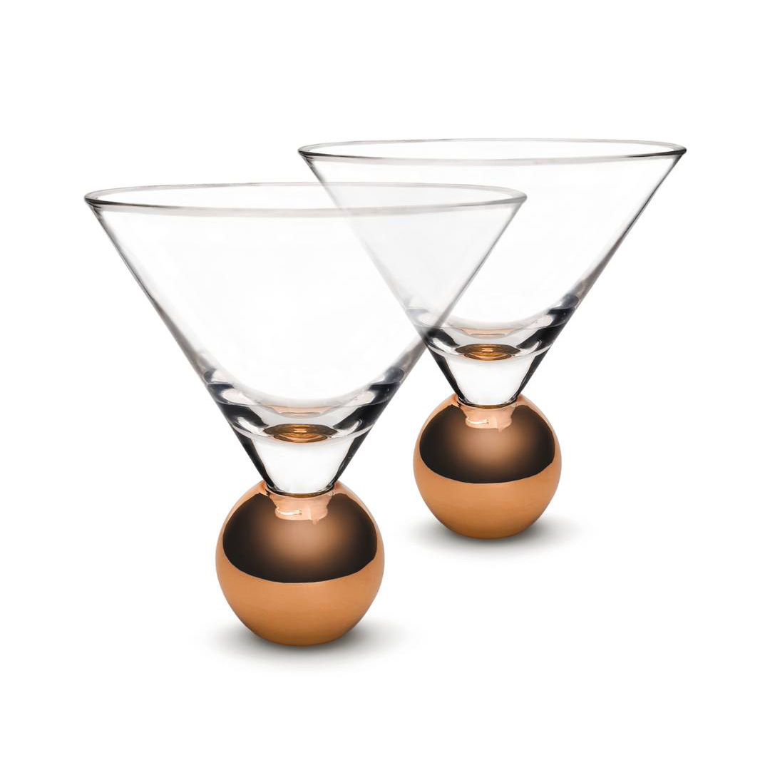 Shaken or stirred? Either way, these stunning stemless martini glasses will do the heavy lifting when it comes to impressing your guests. The copper sphere bases aren’t just beautiful – they’re a clever twist that gives these glasses their distinctive character.